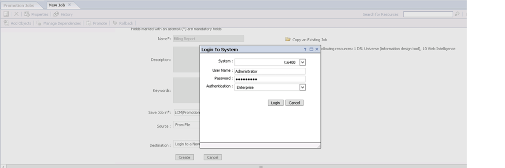 g. Click the Destination and select the Destination as Login to New CMS. And enter the destination system Click on LOGIN.