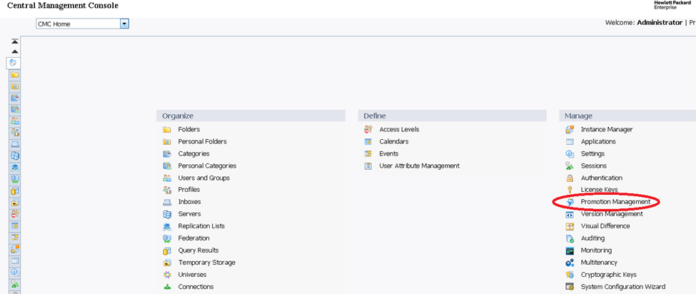b. Enter the OBR BI CMC URL and Login as Administrator