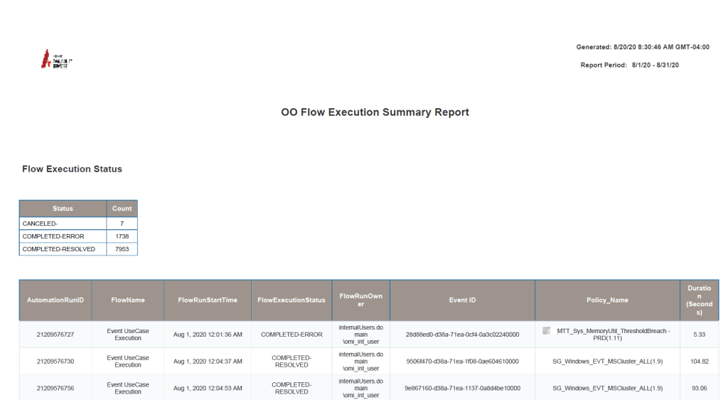 The primary objective of this OBR-based solution was to develop a report providing a concise overview of OO flow execution status, specifically for flows integrated with Operations Bridge Manager (OBM). The report must enable users to: