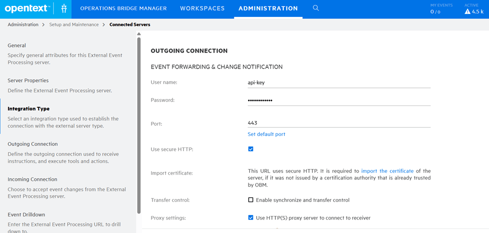 - Now under External Event Processing, create a new server connection