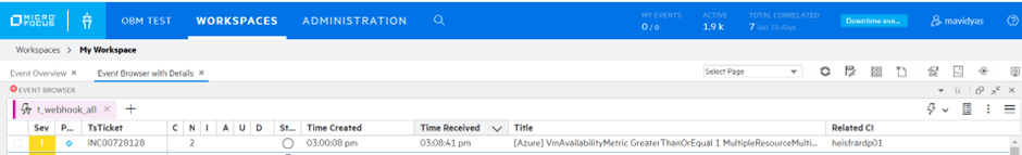 Event in OBM and Ticket information updated in it from SNOW: