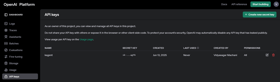 OpenAI API Key generate: