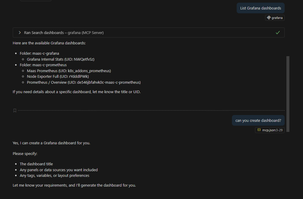 With MCP, Grafana becomes natively accessible inside VS Code. You no longer need to alt-tab between browser and IDE—your observability data is right where you code.